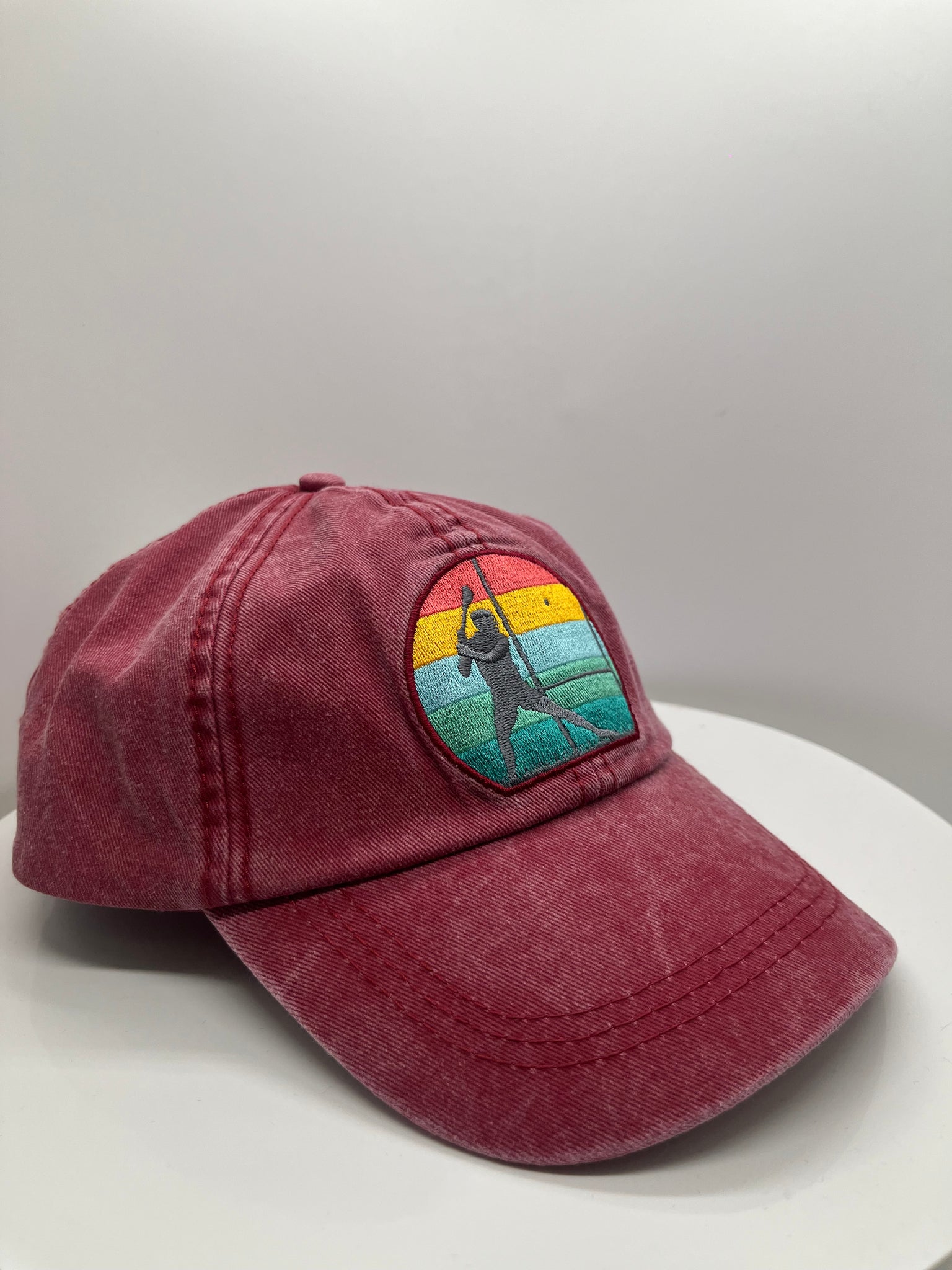 Stand out on the sidelines in our new I'd Rather Be Hurling baseball cap. This hurling silhouette design comes on a burgundy cap.