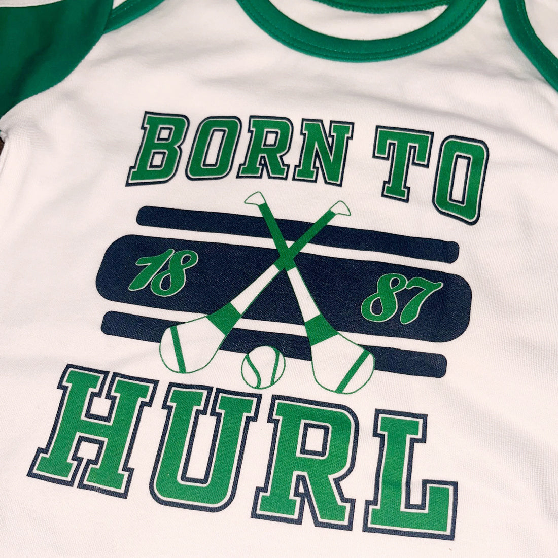 Even the smallest GAA fans can get dressed for hurling success, with our exclusive 'Born to Hurl' romper suits.