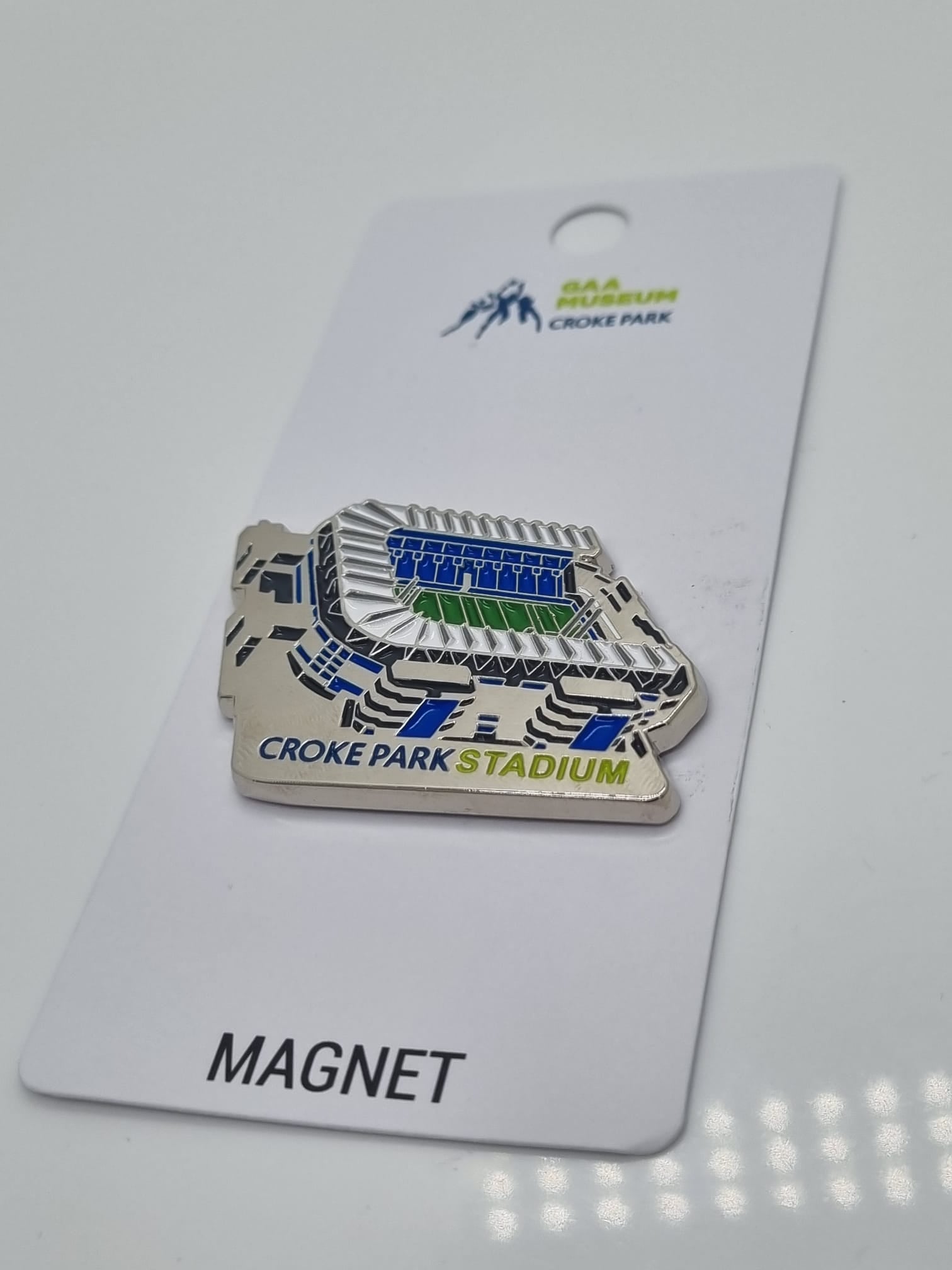 Stick Croke Park on your fridge with this metal magnet designed exclusively for the GAA Museum! The magnet comes on a GAA Museum backing card and features a design of the iconic stadium.
